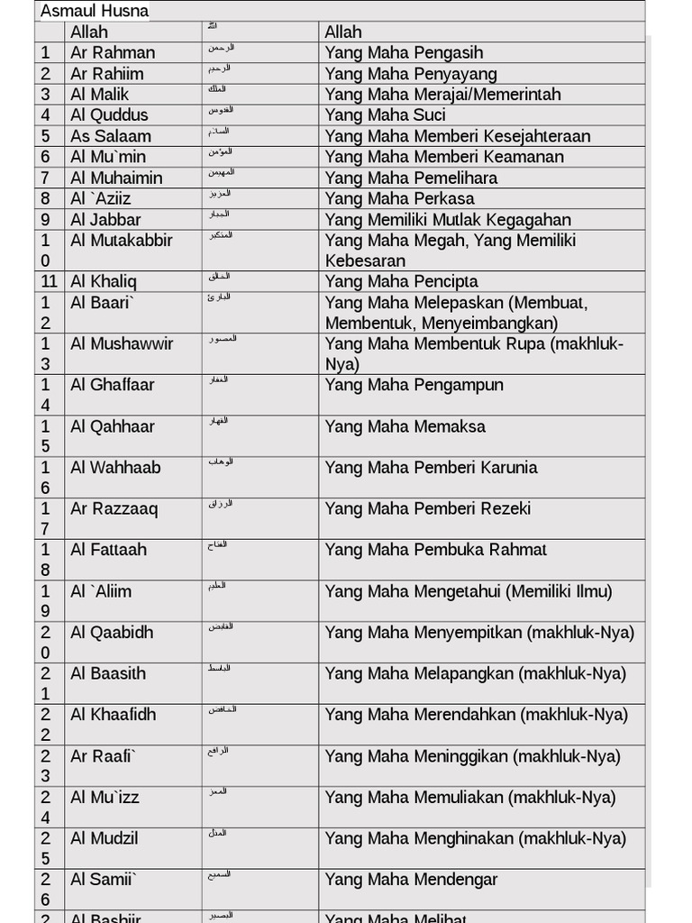 Mari mengenal lebih dalam makna yang di dalamnya. Selanjutnya kita akan menjelaskan 99 asmaul husna dan artinya beserta tulisan arabnya. Asmaul husna (nama paling baik) berdasarkan bahasa ismi. Manfaat mengajarkan 99 asmaul husna beserta artinya kepada anak. Dialah allah, tidak ada tuhan (yang berhak.